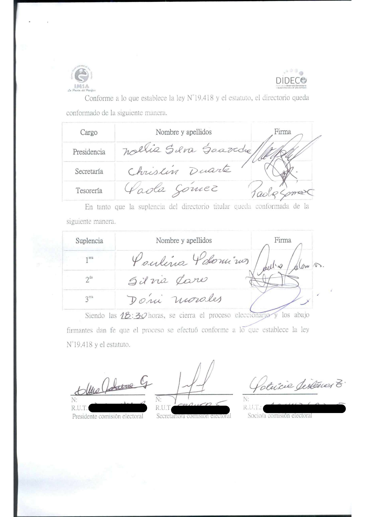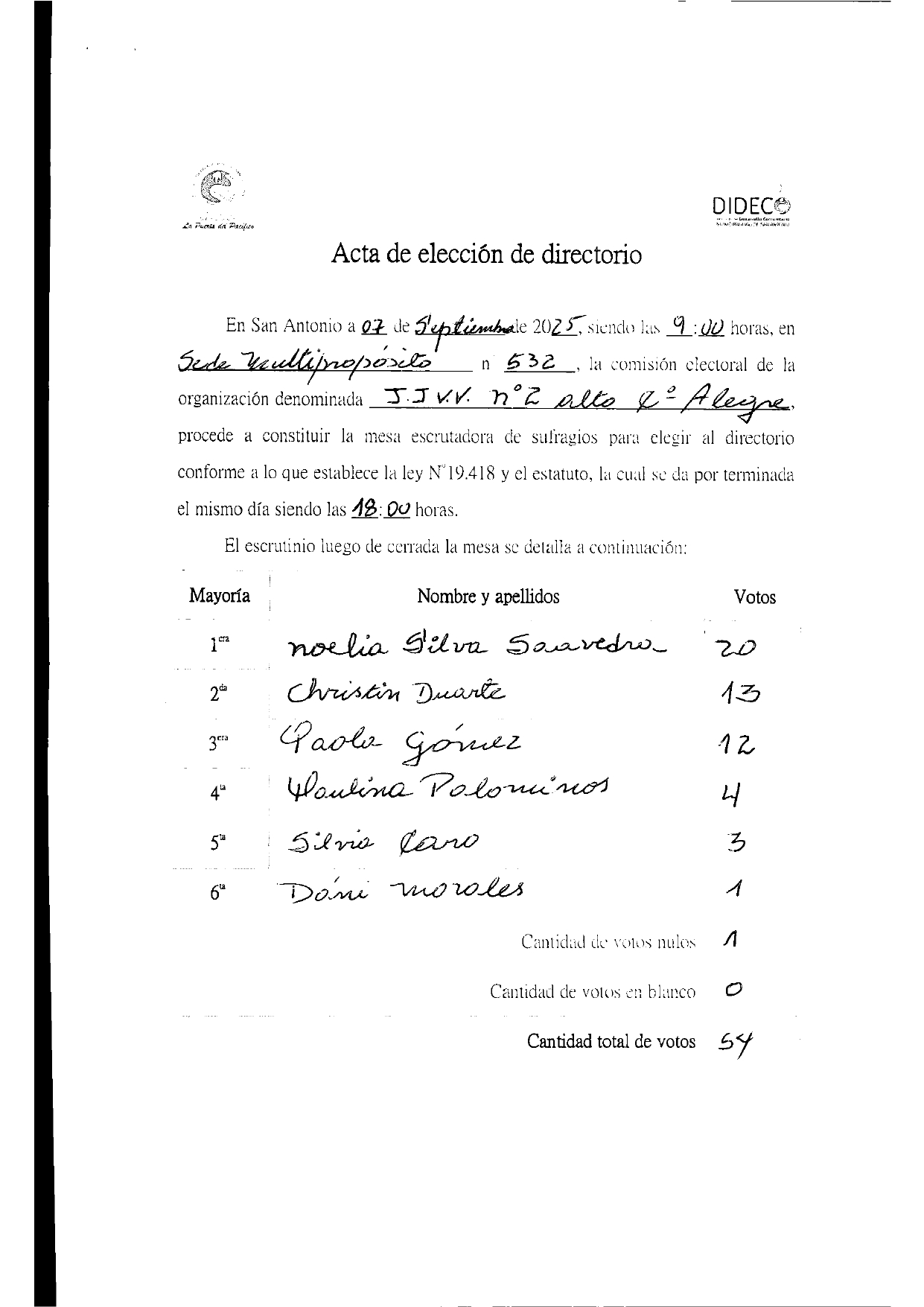 Acta de elecciones JJVV ALTO CERRO ALEGRE