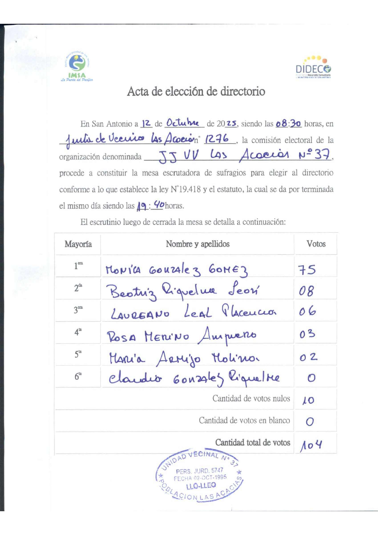 Acta de elecciones COMITE HABITACIONAL ALTO SAN ANTONIO