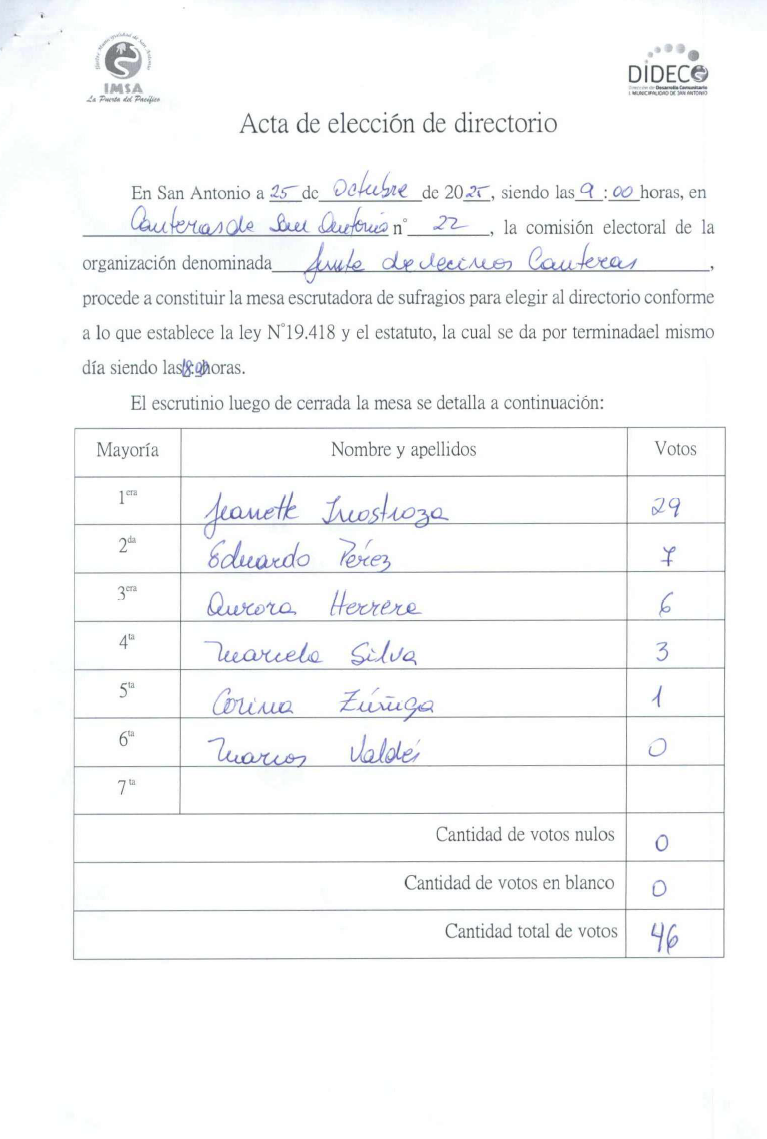 Acta Junta de Vecinos Canteras