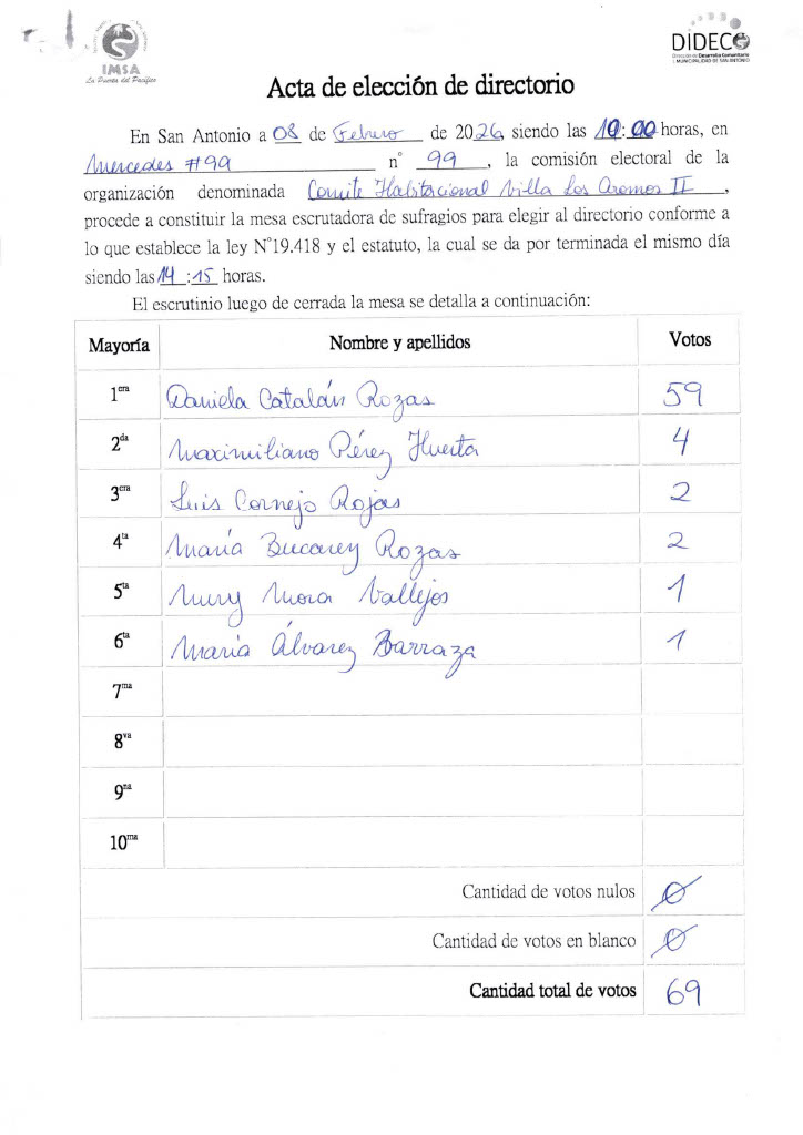 ACTA COMITE HABITACIONAL VILLA LOS AROMOS II 1