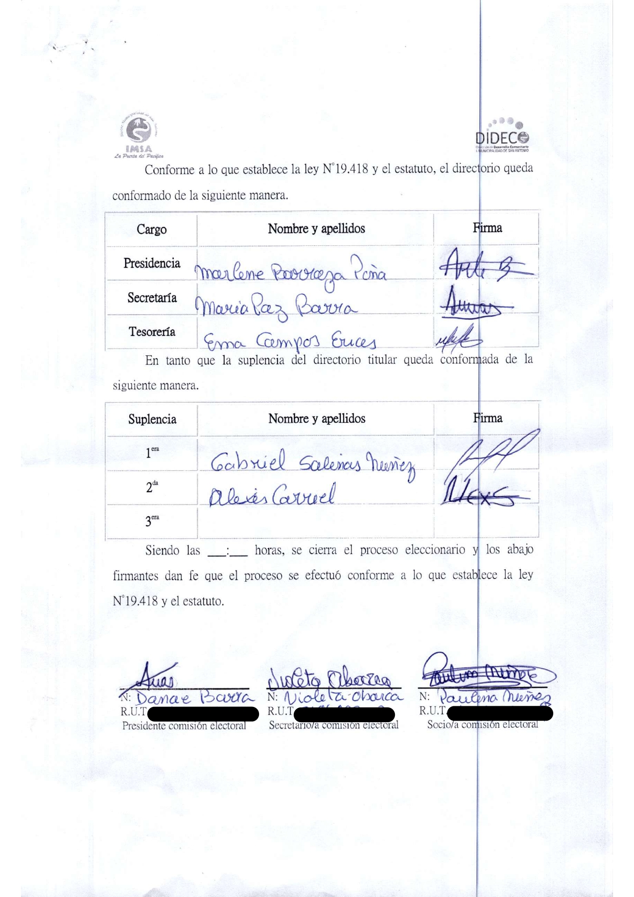 Acta de elecciones COMITE HABRITACIONAL MARANATA